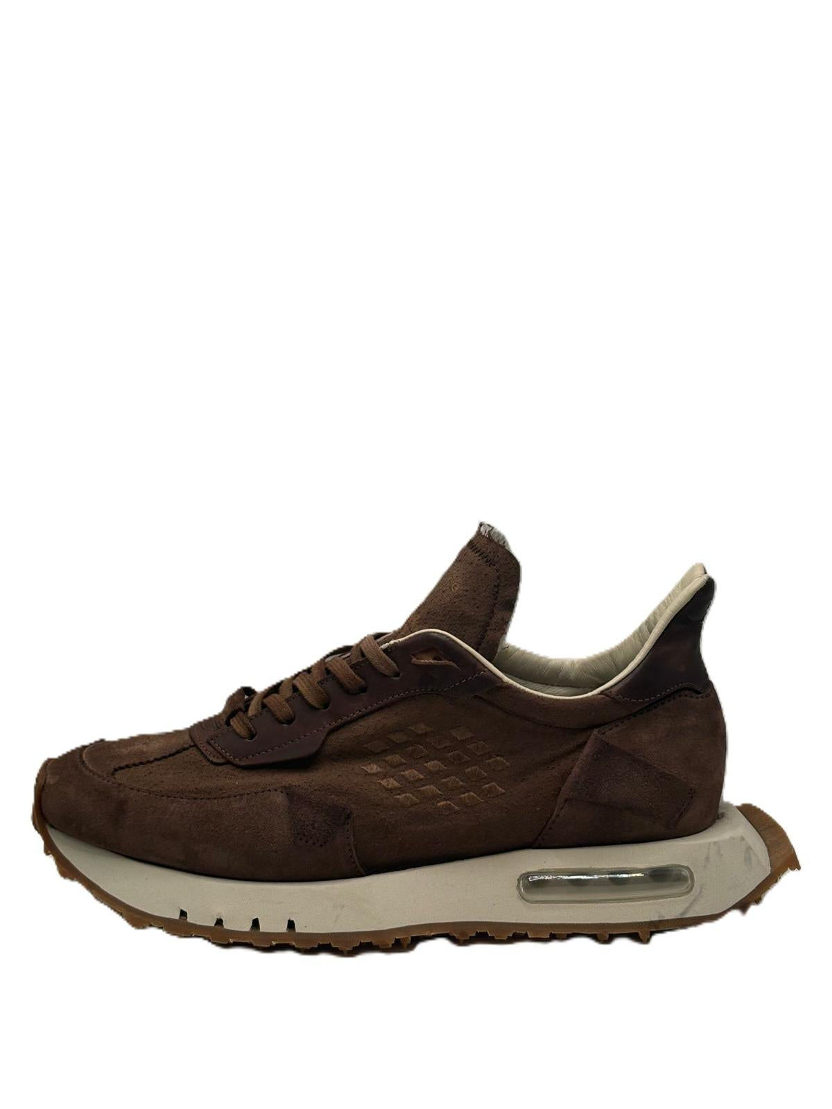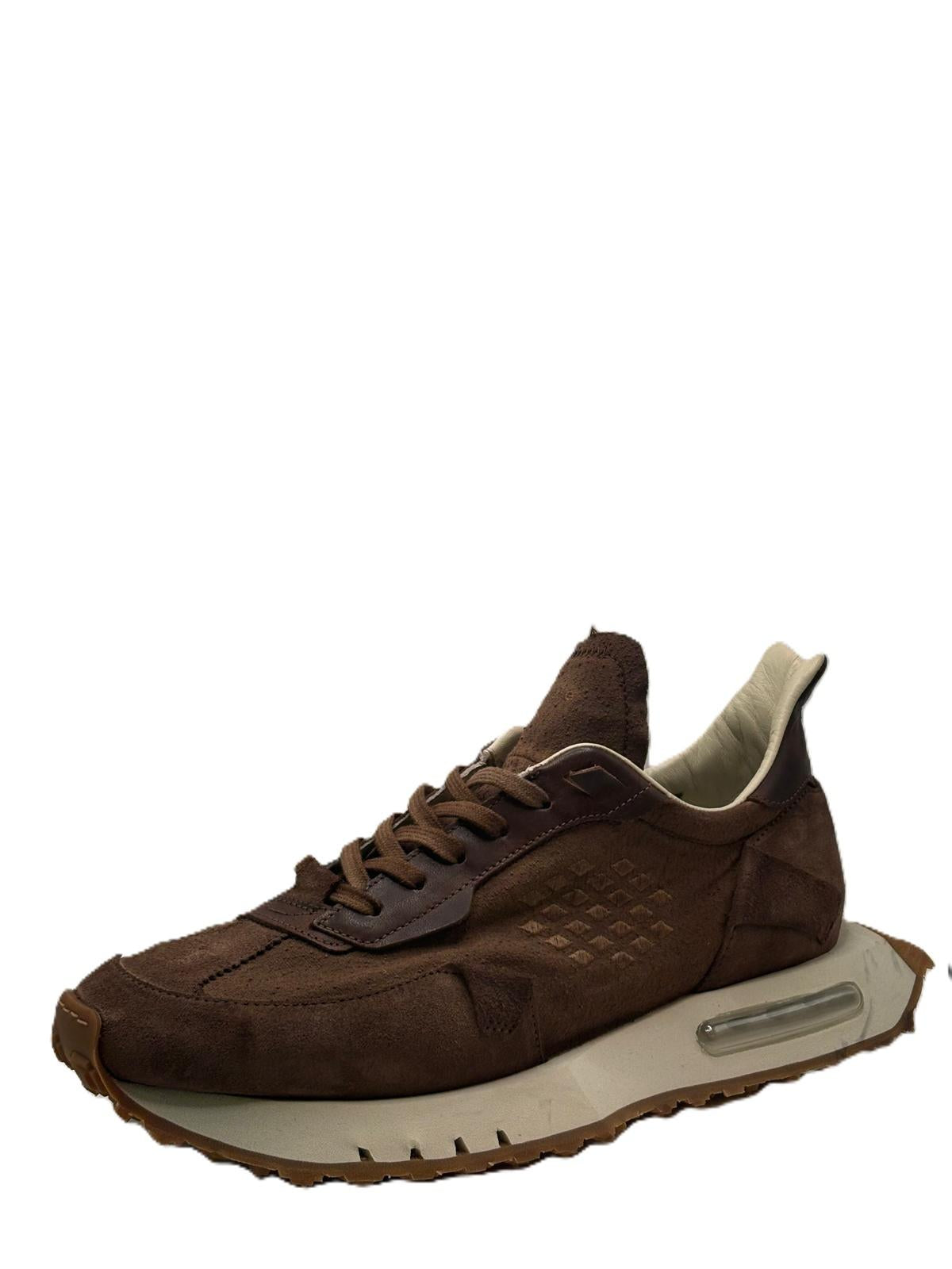 Sneaker artigianale con tomaia trattata manualmente per ottenere un effetto vissuto e autentico. La struttura garantisce una calzata regolare e un buon supporto del piede. La suola in gomma con inserto ammortizzante assicura comfort e durata, rendendo il modello adatto a un utilizzo prolungato.