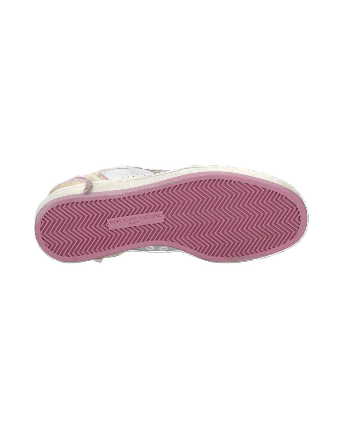 Sneaker femminile dal design audace, in pelle e suede fucsia con dettagli luminosi. Una scelta vivace che dona energia e personalità a ogni look urbano.
