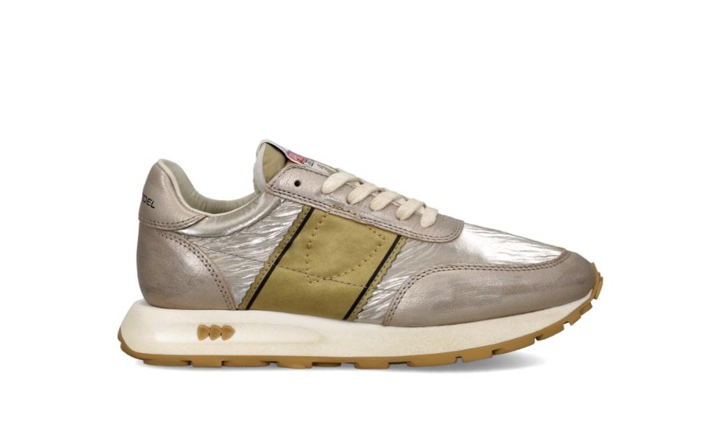 Sneaker femminile in pelle dorata, silhouette elegante e leggera. Ideale per look raffinati con un tocco glamour.