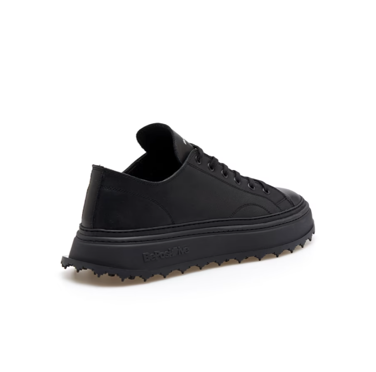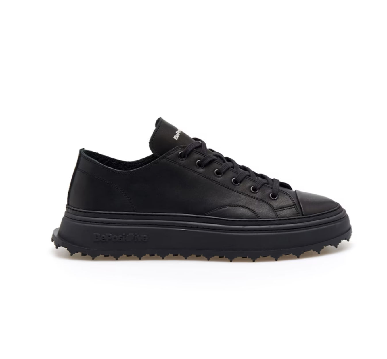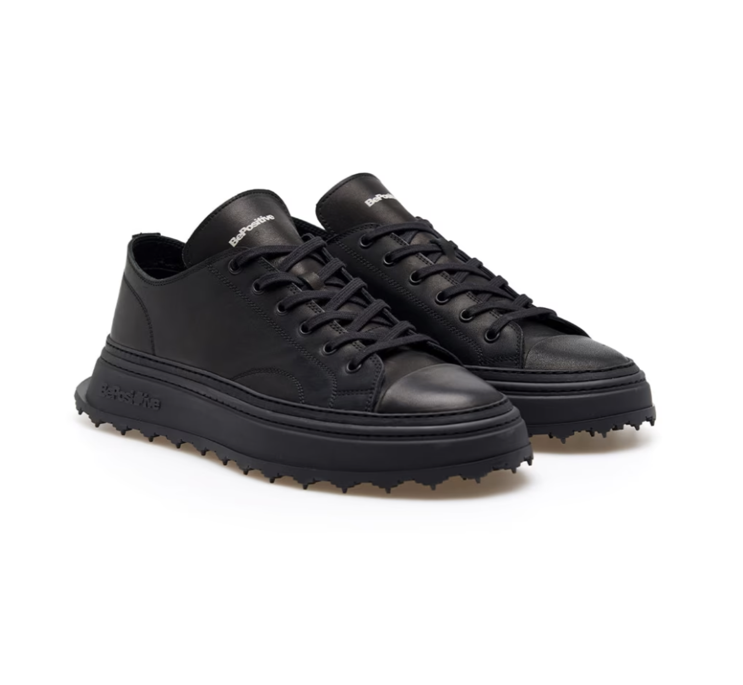Versione bassa delle cuprace star, questo modello presenta una tomaia in pelle nera premium, combinata con suede scuro per un look total black. Il design è pulito ma forte, con logo minimale e finiture curate che evidenziano la qualità artigianale tipica di BePositive.